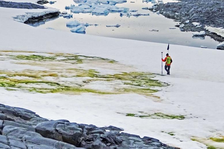 تستحضر القارة القطبية الجنوبية "أنتارتيكا" صورة ذهنية لثلوج لا يشوب بياضها شائبة لكن بعض نبتات الطحالب أصبحت تعطي القارة المتجمدة مسحة متزايدة من اللون الأخضر.