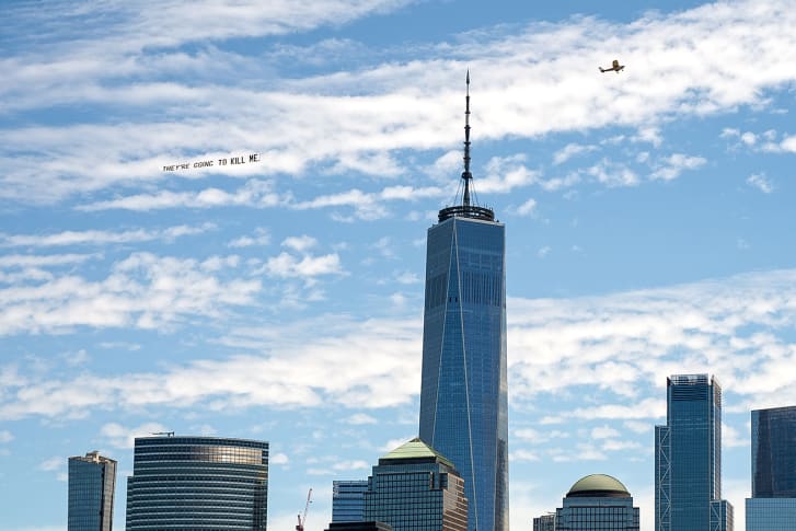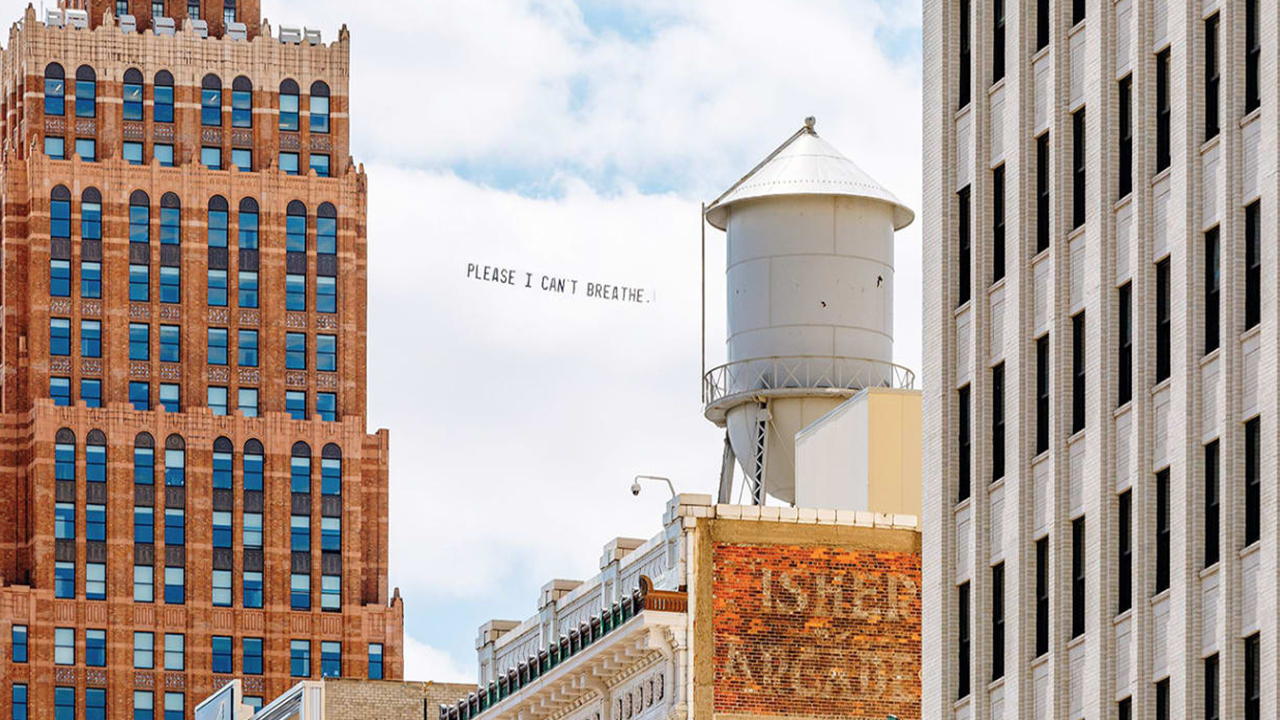 ومع انتشار التظاهرات ضد وحشية الشرطة في جميع أنحاء البلاد والعالم، وجد الفنان المقيم في دالاس جيمي هولمز طريقة جديدة لتخليد صرخات فلويد وذلك بإرسالها عبر سماء خمس مدن أميركية رئيسة، وذلك بحسب موقع "سي ان ان" الإخباري الأميركي.