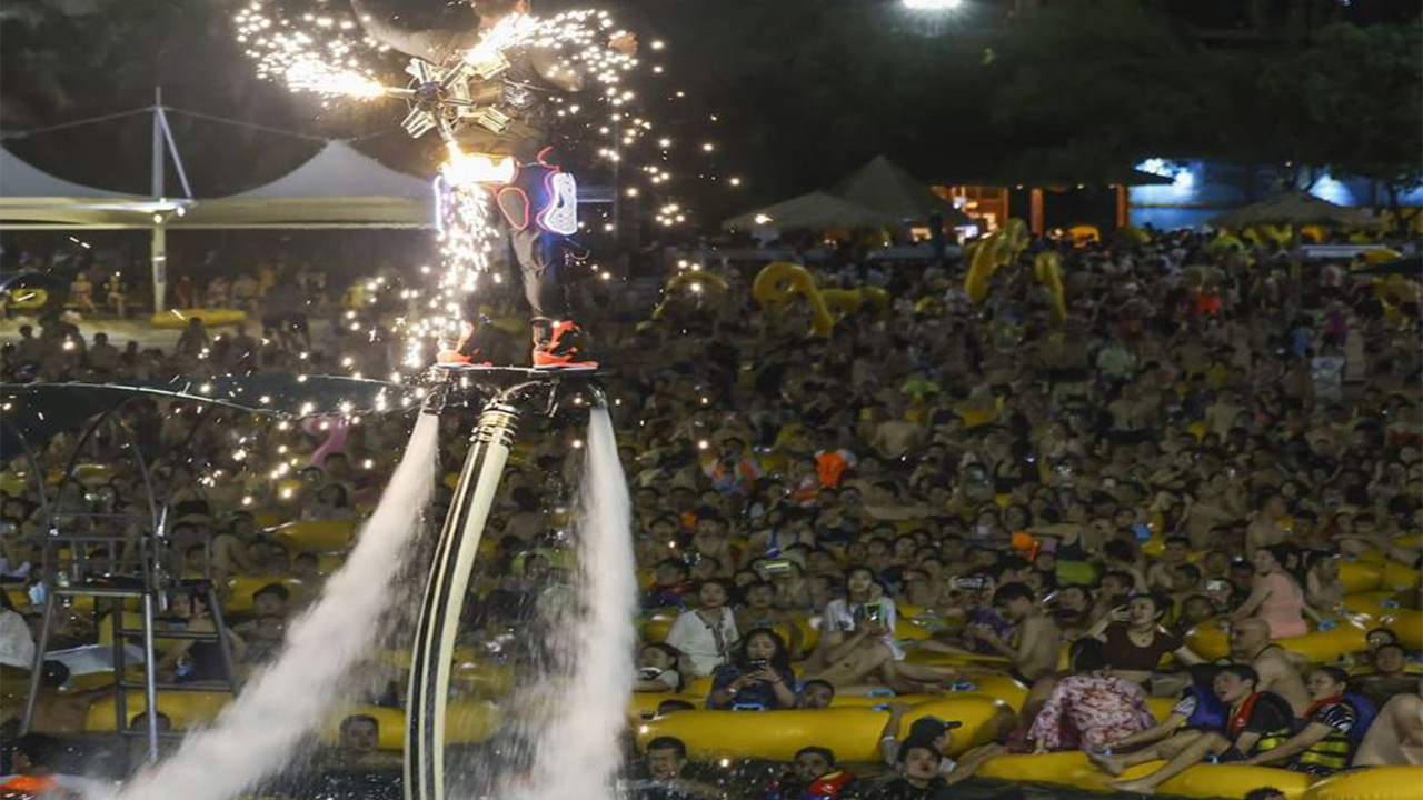 وكان منتزه ووهان مايا بيتش المائي الشهير مليئًا بالناس وهم يرتدون ملابس السباحة والنظارات الواقية لمهرجان الموسيقى الإلكترونية، وقد جلس العديد منهم على قوارب مطاطية من دون احترام إجراءات الوقاية من فيروس كورونا المستجد.