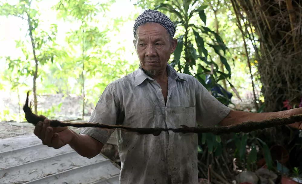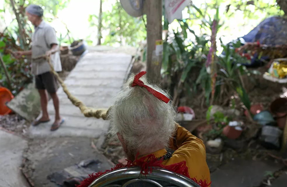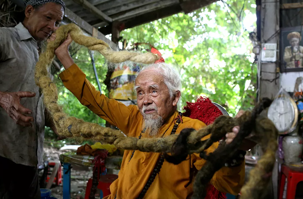يتفاخر الرجل الفيتنامي، نغوين فان شين (92 عاما) بضفائره التي تجاوز طولها 5 أمتار ولم يلمسها مقص أو ماء أو مشط منذ 80 عاما.