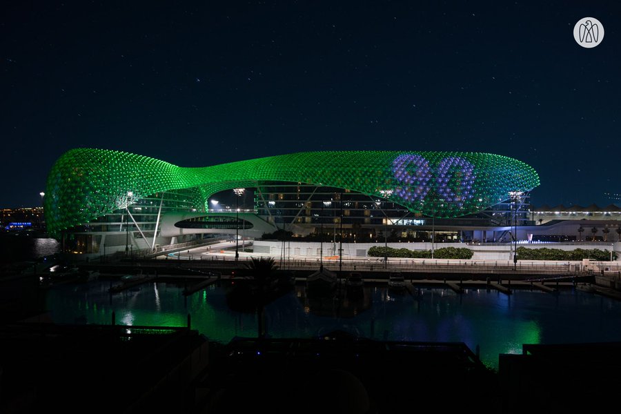 أضاءت إمارة أبوظبي أبرز معالمها بألوان علم المملكة العربية السعودية احتفاءً بـ #اليوم_الوطني_السعودي_ال90