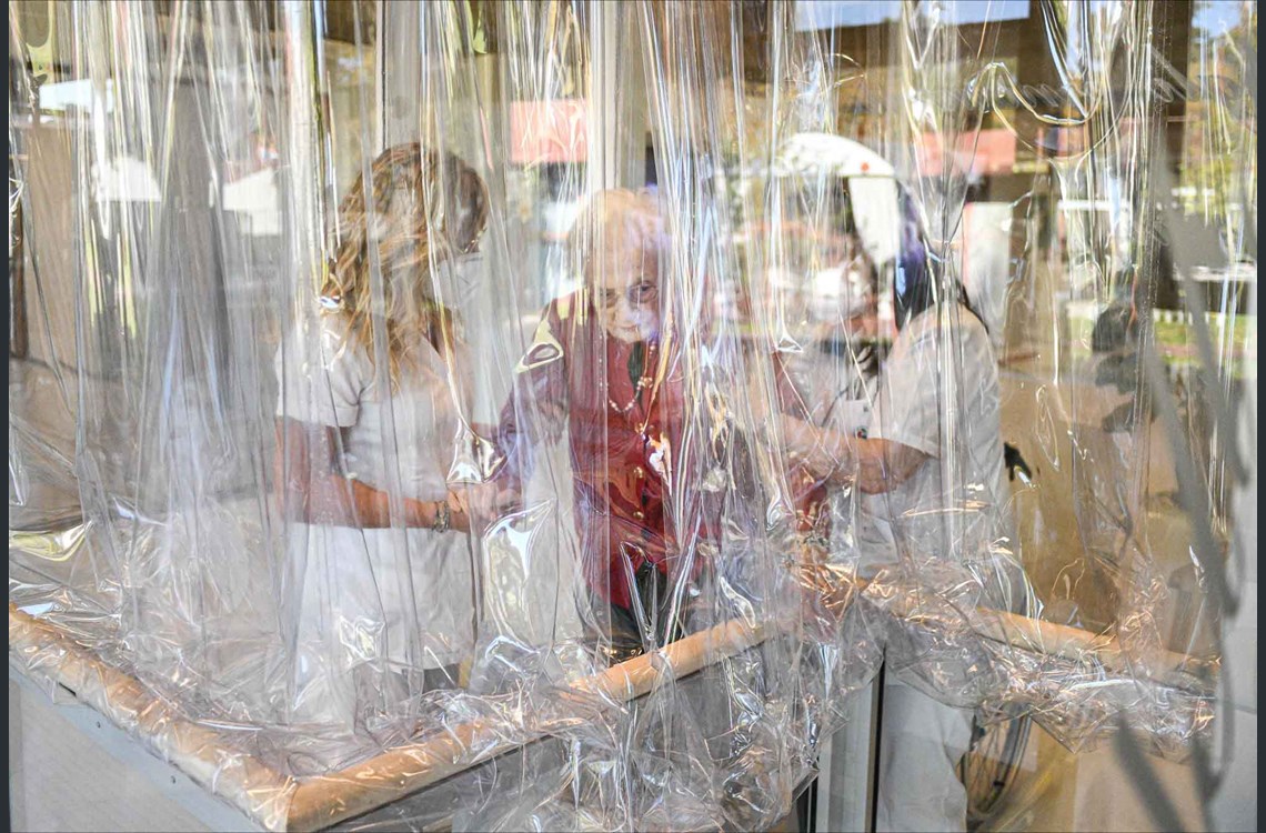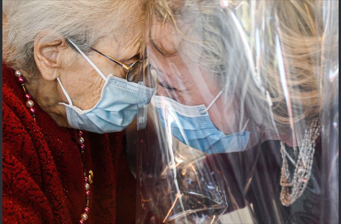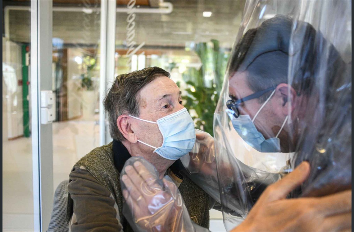 بالصور.. دار مسنين في ايطاليا تخصص "غرفة العناق" بزمن "كورونا"