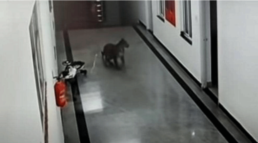 تداولت مواقع تواصل اجتماعي مقطع فيديو يُظهر تجوّل فهد صغير في أحد ممرات كلية جامعية هندية.