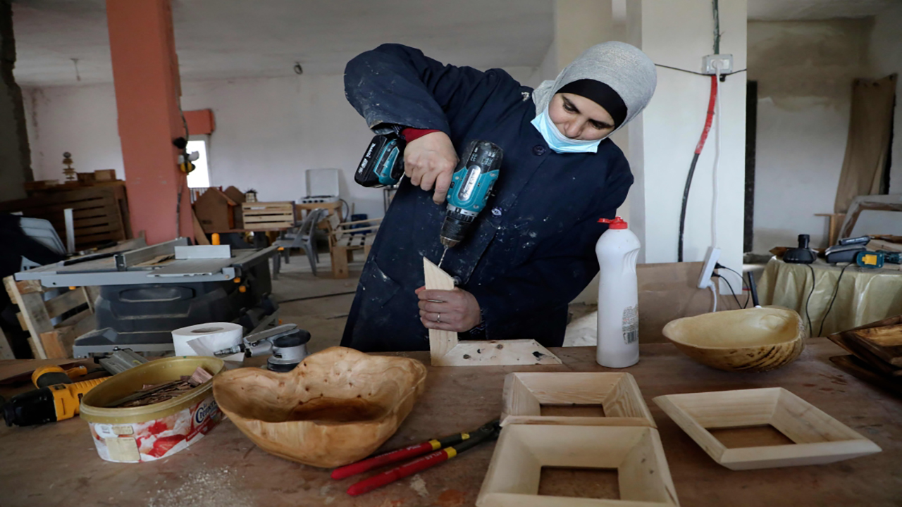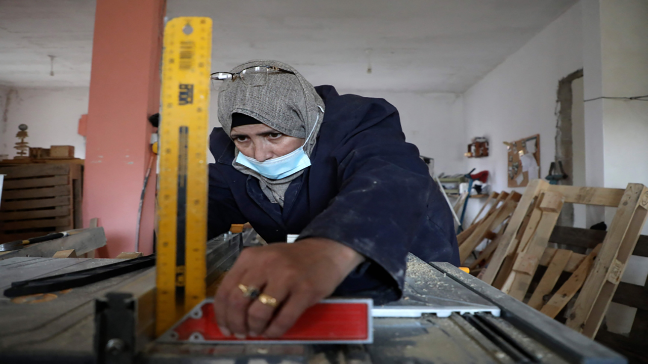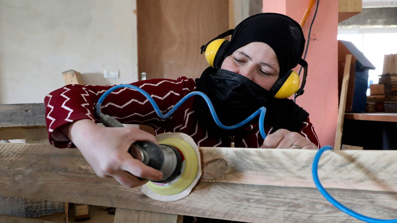بالصور: فلسطينيات يدرن ورشة نجارة بالكامل
