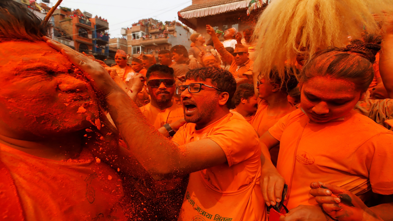 بالصور: مهرجان "سيندور جاترا" للترحيب بقدوم الربيع والعام الجديد النيبالي