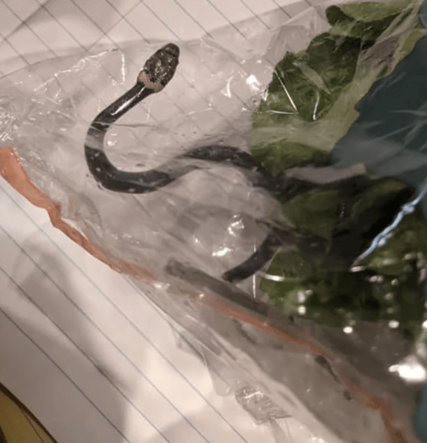 وأضافت الوكالة أن المرأة طلبت من ابنها شراء كيس سلطة طازجة، لتتفاجأ بوجود ثعبان صغير داخل الكيس.