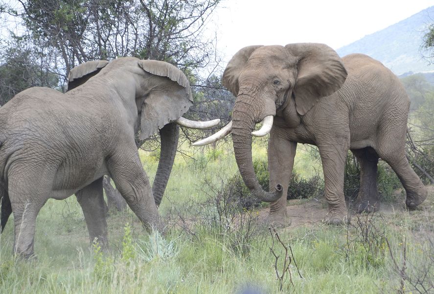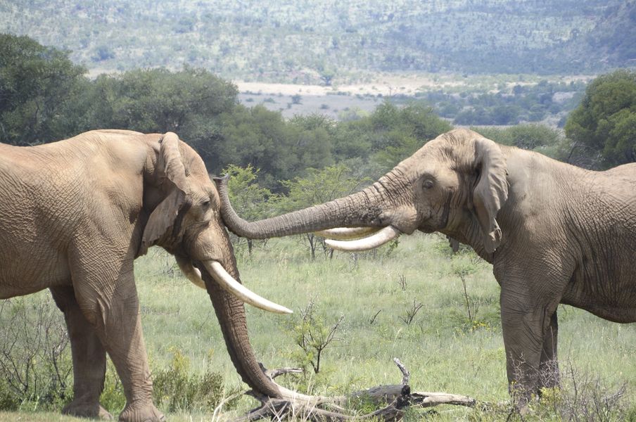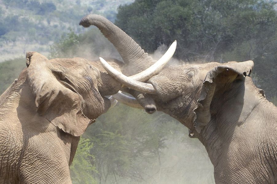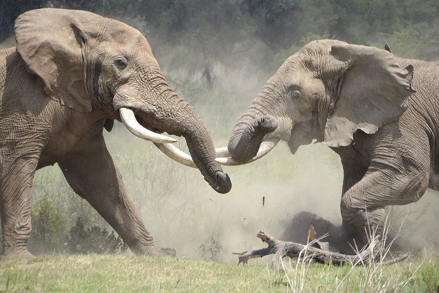 في محمية بيلانسبيرج بجنوب أفريقيا، "يشبك" اثنان من الأفيال العملاقة أنيابهما في معركة شاقة استمرت لأكثر من ساعة، مما يظهر القوة الكامنة في تلك الحيوانات الضخمة.