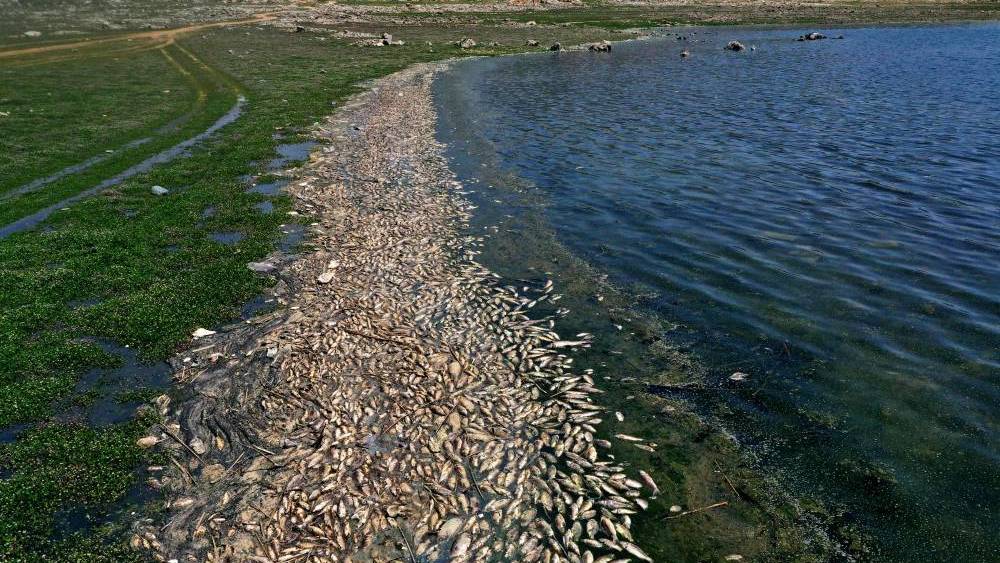 وعلى ضفاف البحيرة، يمكن رؤية مئات الأسماك من كل الأحجام مكدسة، على مسافة تفوق الخمسة كيلومترات، فيما تنتشر رائحة نتنة في الجو. وعكف رجال على إزالة الأسماك النافقة بالمجارف، وحملها في عربات، وتفريغها في شاحنات.