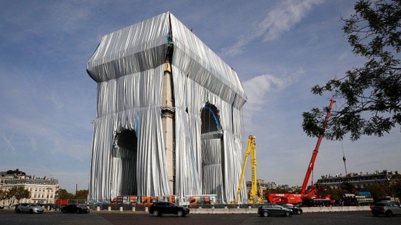 ومن المتوقع أن تنتهي عملية تغليف قوس النصر السبت المقبل، وسوف يستمر هذا الغلاف في مكانه فوق هذا المعلم التاريخي الباريسي حتى الثالث من أكتوبر المقبل.