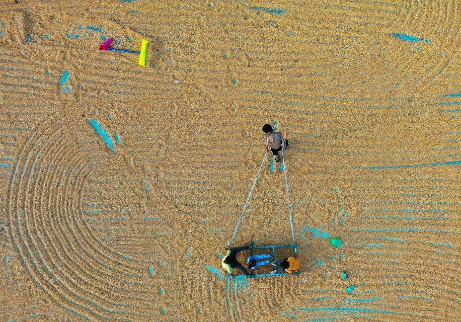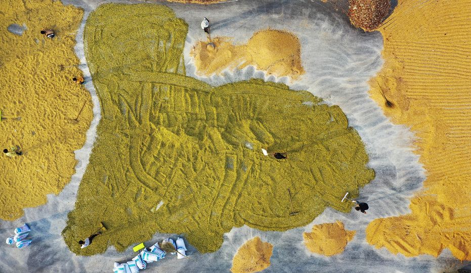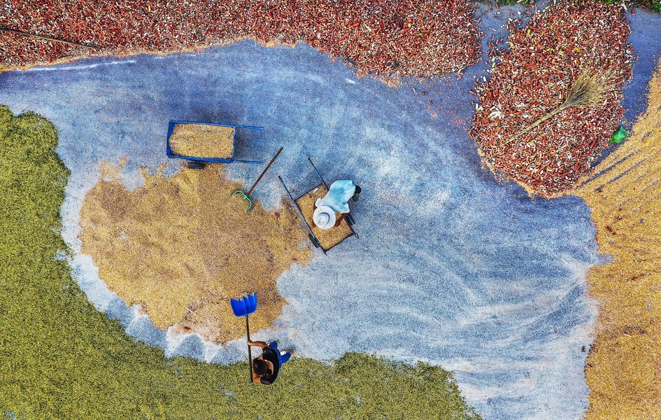 مع حلول أول أكتوبر 2021، ينشغل القرويون بتجفيف الذرة وفول الصويا، والمواسم التي تم حصادها قبل وقت قصير في قرية شيوان بمحافظة وييشان لمدينة جينينغ، مقاطعة شاندونغ، ويشكل هذا المشهد الصورة الملونة "للثراء".