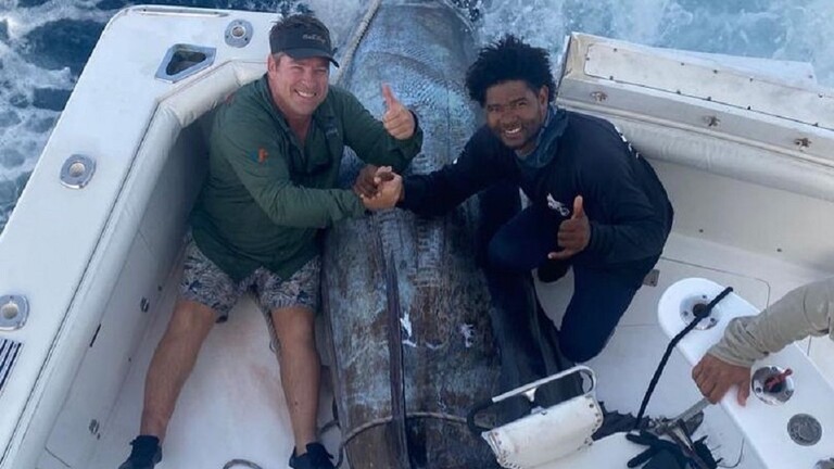 صارع ثلاثة صيادين من جنوب إفريقيا سمكة بلو مارلين العملاقة، والتي تعتبر أضخم سمكة على مر العصور، واستطاعوا اصطيادها أثناء رحلة صيد لمدة 6 أيام في جزر الرأس الأخضر.