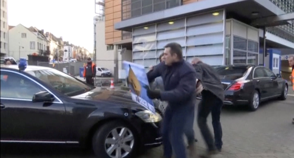 وأظهر مقطع فيديو نشرته وكالة رويترز، رجلا جاء إلى مقر المفوضية الأوروبية في بروكسل، لينتظر ماي ويحتج على «بريكست».