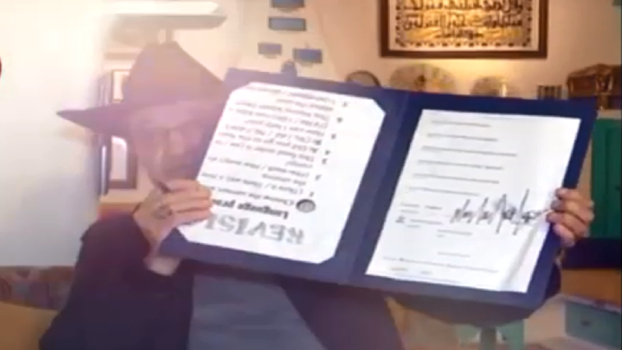 ويظهر في مقطع الفيديو لحام يوقع على ورقة قرار مشابه لقرار ترامب الذي اعترف فيه بسيادة إسرائيل على الجولان، قائلاً إن قراره ينص على إهداء ولاية كاليفورنيا الأميركية للمكسيك.