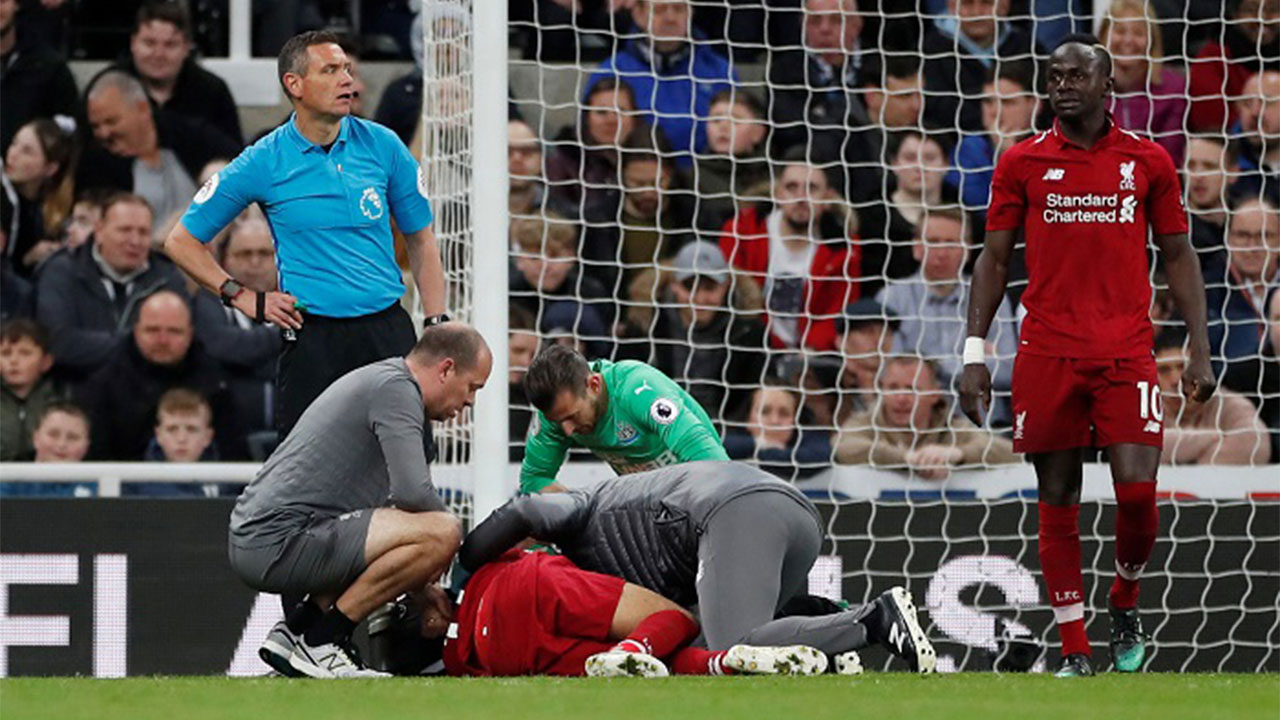 تعرض النجم المصري محمد صلاح لاعب ليفربول الإنجليزي إلى إصابة قوية مساء السبت خلال مباراة فريقه أمام نيوكاسل يونايتد على ملعب «سانت جيمس بارك» ضمن مباريات الجولة 37 في الدوري الإنجليزي.