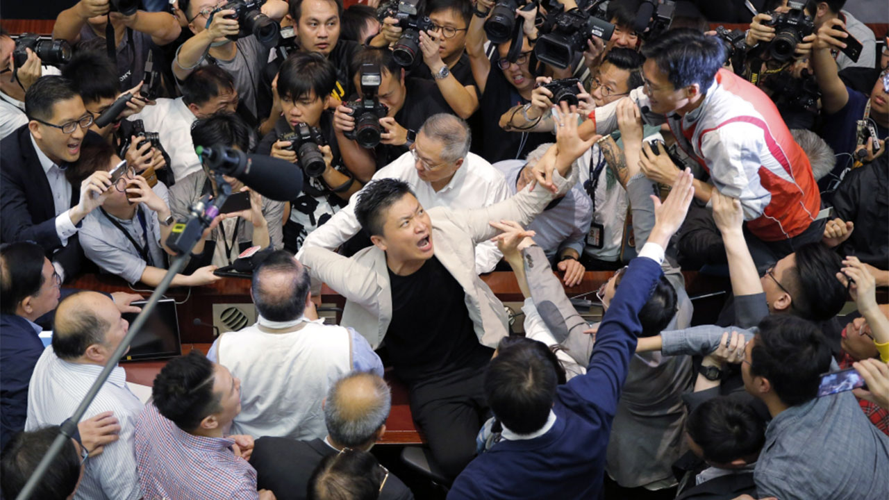 بالصور.. عراك بالأيدي ومشادات في برلمان هونغ كونغ