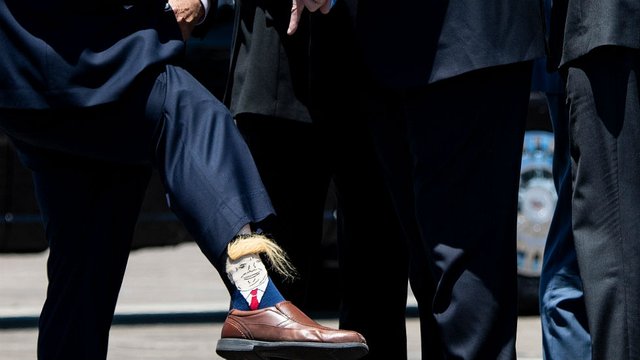 وفي لقطة وثقتها عدسات المصورين، مدّ الحاكم قدمه ليظهر جانبا أكبر من "جوارب ترامب"، فيما أشار الرئيس الأميركي إليها بإصبعه، والابتسامة تعلو وجهي الرجلين.