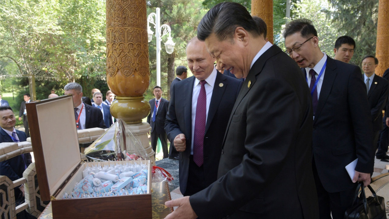 وقال التلفزيون الصيني إن بوتين أهدى شي بوظة روسية، دون الإفصاح عن نكهتها، وإن شي رد بإهداء بوتين مشروب الشاي الصيني.