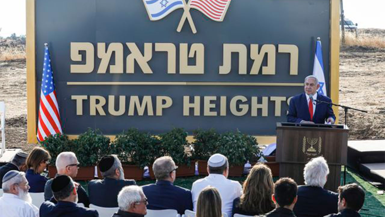 وعقد مجلس الوزراء جلسة استثنائية في خيمة في مرتفعات الجولان بحضور السفير الأميركي ديفيد فريدمان، وقرر التصويت لبناء مستوطنة «رامات ترامب» (مرتفعات ترامب) في كيبوتز «كويلا بروشيم» الذي أقيم عام 1984 وتسكنه حاليا أربع عائلات من المستوطنين.