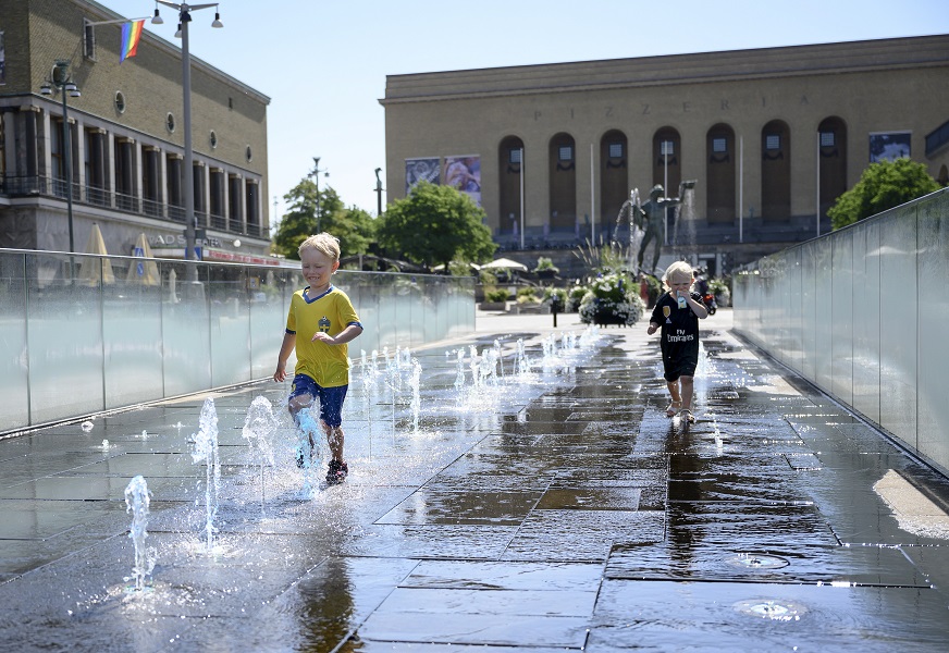 بالصور.. أوروبا تهرب من الحر إلى نوافير المياه