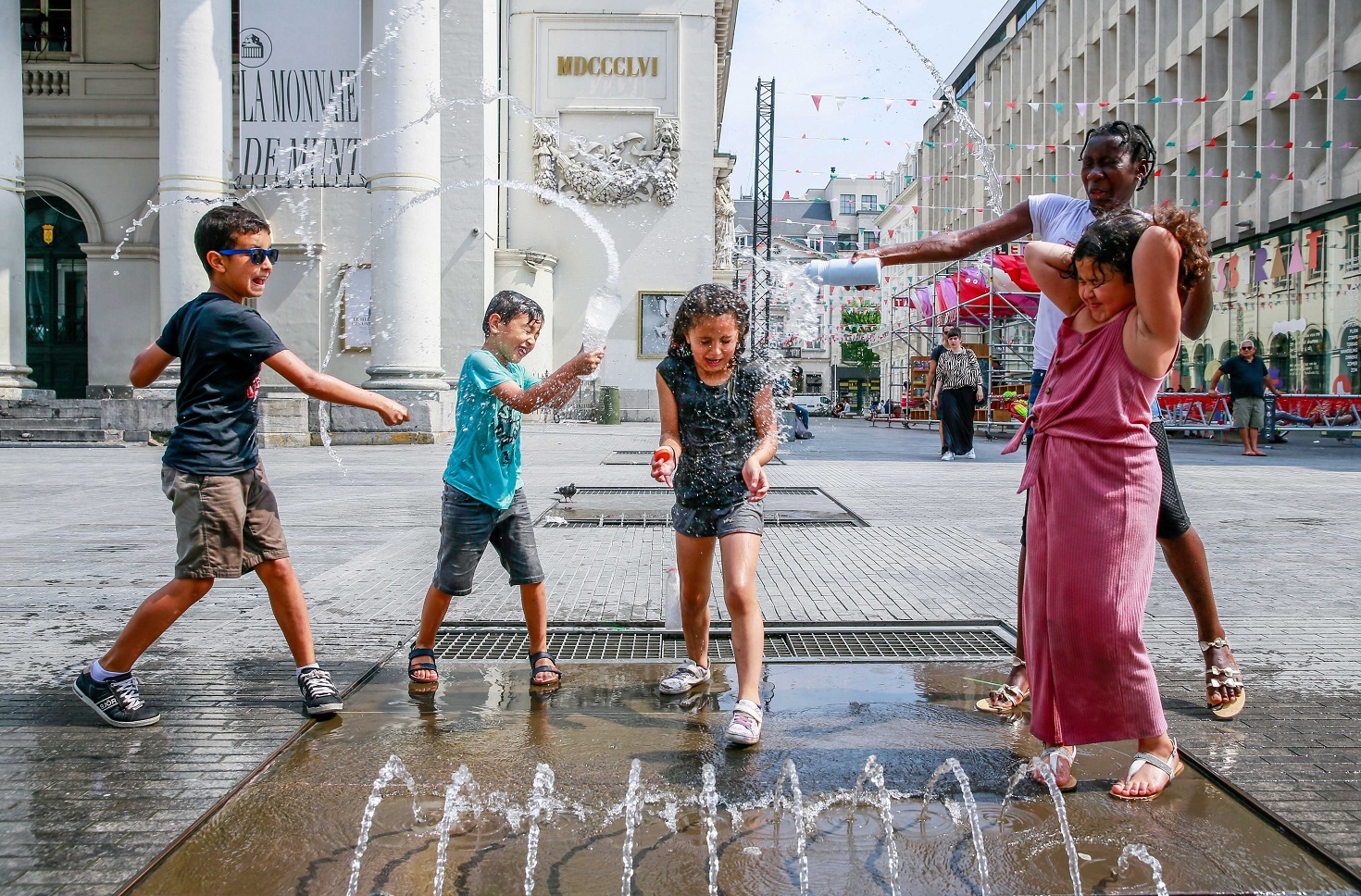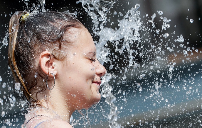 لجأ الكثير من الأوروبيين إلى نوافير المياه هرباً من درجات الحرارة العالية التي سجلت مستويات قياسية في بلدان عدة ومنها فرنسا وبلجيكا وبريطانيا.