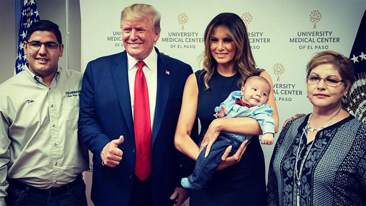 أصبحت صورة للرئيس الأميركي دونالد ترامب وهو يبتسم ابتسامة عريضة ويرفع إبهامه في الوقت الذي كانت فيه زوجته ميلانيا تحتضن رضيعا فقد والديه في حادث إطلاق النار العشوائي في مدينة إل باسو بولاية تكساس مثار حديث وسائل التواصل الاجتماعي بعد أن نشرت ميلانيا الصورة على «تويتر».