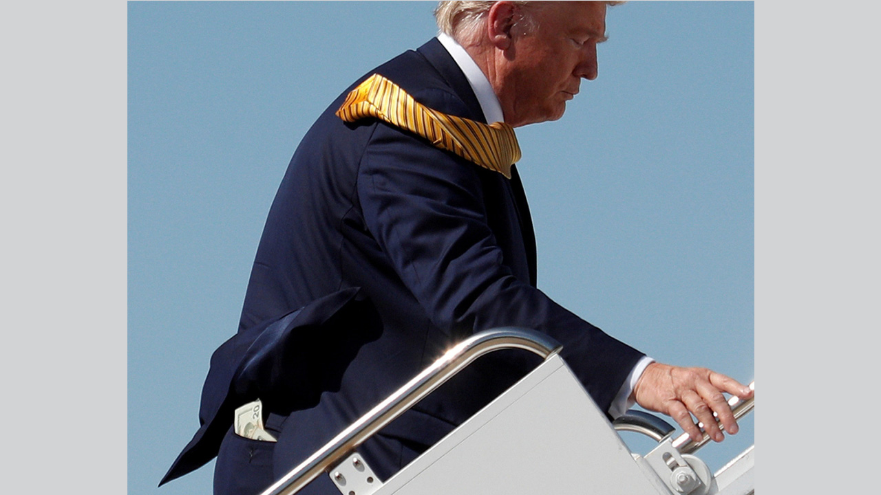 ترامب يحب «البقشيش»... والدولارات تتدلى من جيبه الخلفية