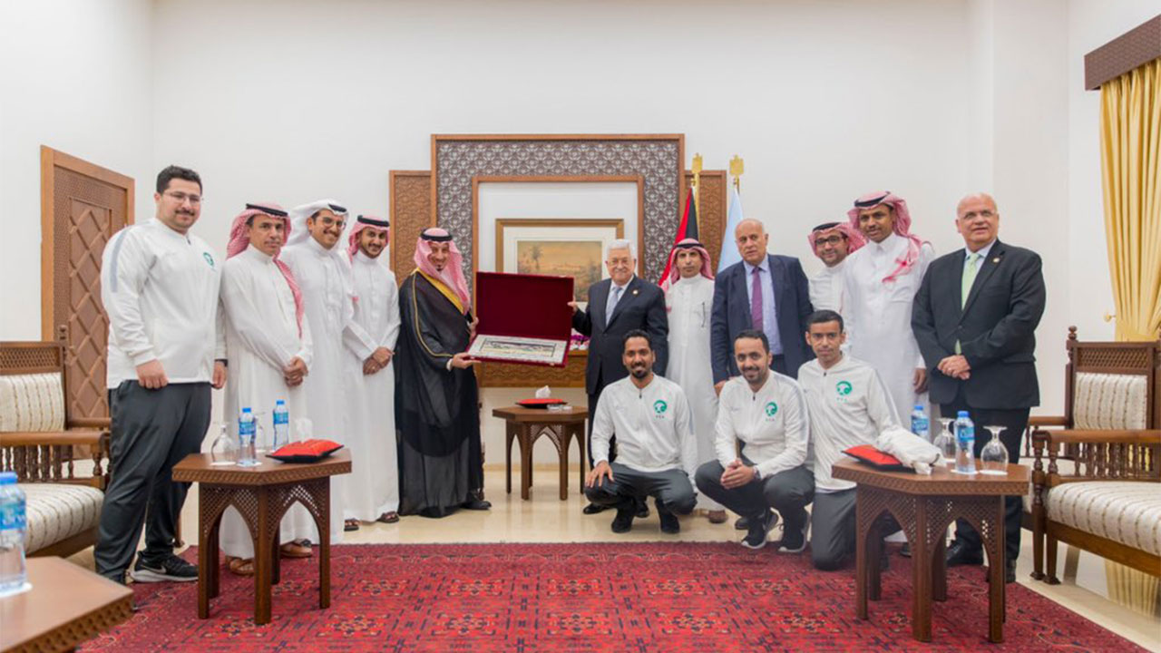 عبر رئيس دولة فلسطين محمود عباس، عن فخره واعتزازه بقدوم المنتخب السعودي لكرة القدم إلى فلسطين، مؤكدا انه يجسد العلاقة التاريخية بين فلســطين والمملكة العربية السعودية.
