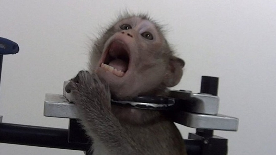 وأظهر الفيديو ومجموعة صور متداولة على مواقع التواصل الاجتماعي، قرودا مربوطة بأقواس معدنية في صفوف على الحائط، بينما يضع الآخرون رؤوسهم مقيدة ويظهرون في محاولة يائسة للهروب، فيما يبدو أن كلاب الصيد تنزف بغزارة نتيجة التجارب التي تعرضوا لها.