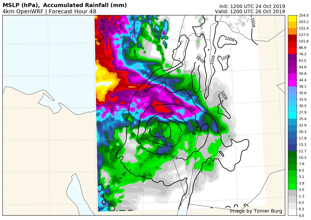 وأضافت أن التوقعات تعزز مخاوف متعلقة بفيضانات ساحلية وأمطار غزيرة في أقصى شرق مصر، قد تصل أيضا إلى أجزاء من إسرائيل والأراضي الفلسطينية والأردن.