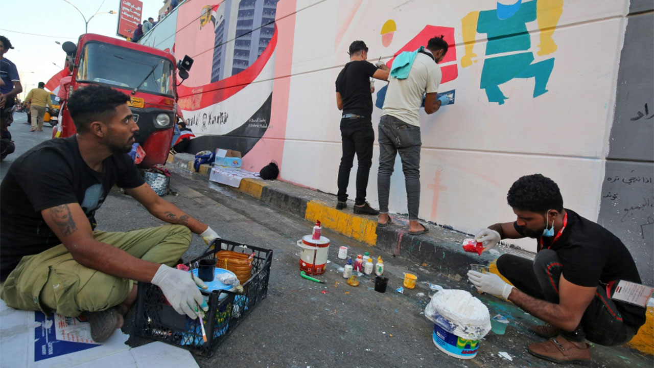 بالصور.. الألوان لغة «الثورة» على جدران بغداد