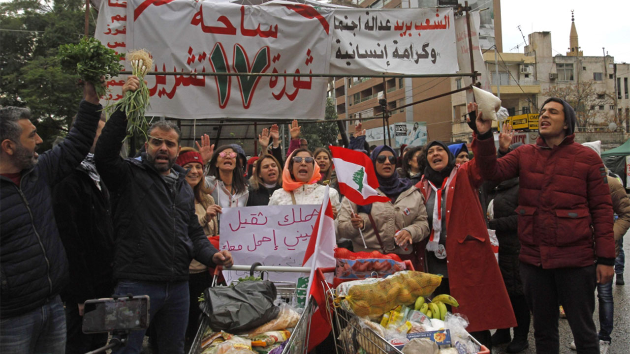 وأمام مصرف لبنان المركزي في بيروت، نصب متظاهرون أطلقوا على نفسهم اسم «مجموعة شباب الثورة» الشهر الحالي خيمة تلقوا فيها تبرعات من ثياب إلى فرش ومواد غذائية لتوزيعها على محتجين. إلى جانب الخيمة، علّقت شعارات جاء فيها «الجوع كافر» و«أنتمي إلى الجياع».