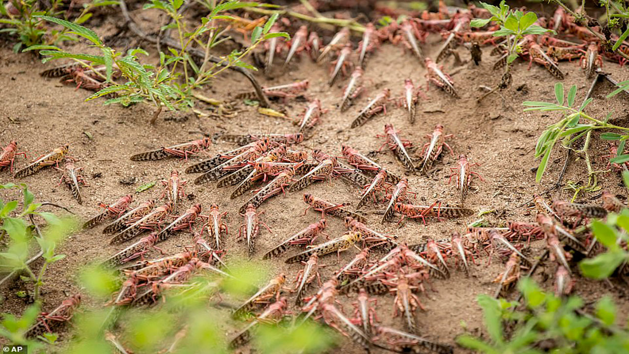 ويرى خبراء أن ظهور أسراب الجراد نجم عن تقلبات شديدة في الأحوال الجوية.