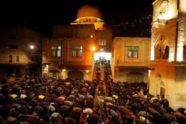 قبل طلوع الشمس يتدفق آلاف الفلسطينيين على المسجد الواقع في ساحة النصر في نابلس لتزيد أعداد المصلين في صلاة الفجر بشدة عن الأعداد المعتادة وذلك لفتح جبهة جديدة في احتجاجاتهم على إسرائيل والولايات المتحدة.