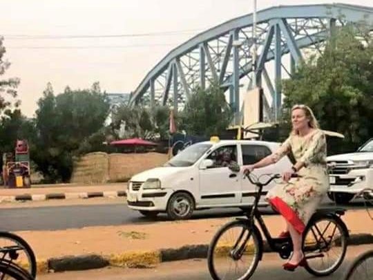 وزيرة التجارة الهولندية تتجول بـ«دراجة هوائية» في شوارع الخرطوم بعد لقاء حمدوك