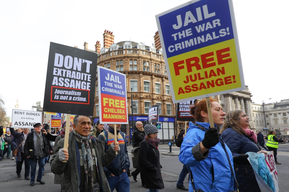 قاد مشاهير وموسيقيون وساسة الآلاف من أنصار مؤسس ويكيليكس، المسجون جوليان أسانغ، في مسيرة بوسط لندن السبت احتجاجاً على تسليمه إلى الولايات المتحدة.
