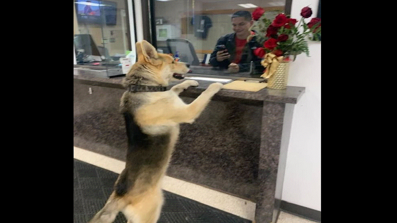 فاجأ كلب أميركي أحد مراكز الشرطة في ولاية تكساس بالدخول، ومن ثم قام بالتوجه إلى المكان المخصص للإبلاغ عن المفقودين، ووضع رجله على جهاز الإبلاغ للتسجيل عن حالات المفقودين.