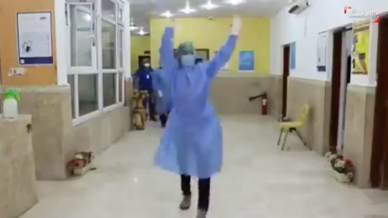 مريض "كورونا" يرقص فرحاً بعد تعافيه.