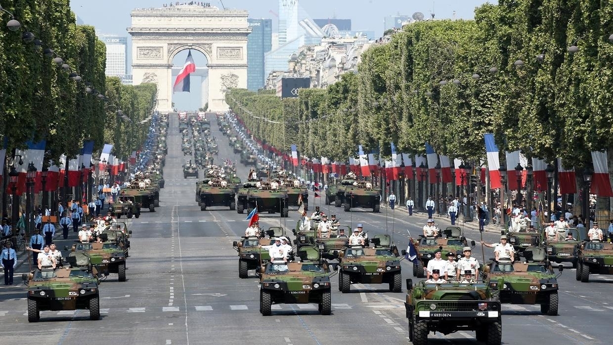 ويسير آلاف من الرجال والنساء من الجيش والبحرية وسلاح الطيران في شارع الشانزليزيه بباريس وفي مناطق أخرى بفرنسا في عروض يوم الباستيل وهو العيد الوطني للبلاد.