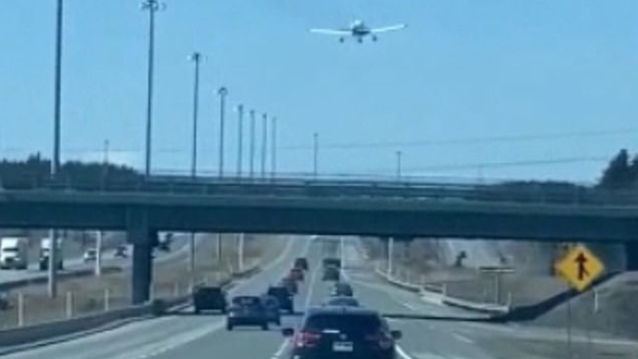 بالصور.. طائرة تهبط اضطرارياً على طريق سريع بكندا