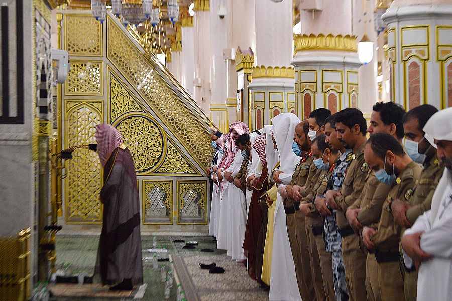 أقيمت في المسجد النبوي بالمدينة المنورة، مساء أمس، أول صلاة تراويح في أول ليلة من شهر رمضان المبارك لهذا العام 1441هـ، بعد صدور موافقة خادم الحرمين الشريفين الملك سلمان بن عبدالعزيز، على إقامة صلاة التراويح في الحرمين الشريفين وتخفيفها إلى خمس تسليمات وإكمال القرآن الكريم في صلاة التهجد مع استمرار تعليق دخول المصلين، وذلك لمنع انتشار فيروس كورونا.