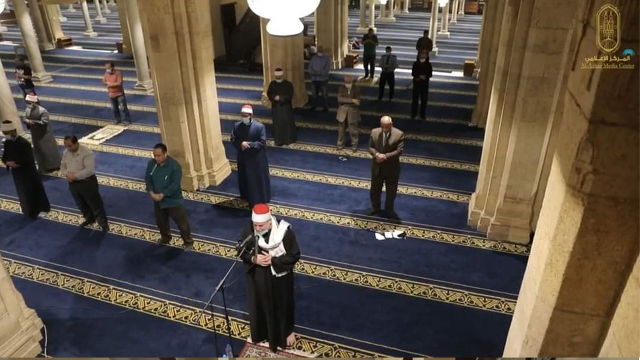 وكان شيخ الأزهر، الإمام أحمد الطيب، قرر السماح بإقامة صلاة التراويح والتهجد بدايةً من العشر الأواخر من رمضان؛ وفقاً للمحاذير الصحية لمنع انتشار فيروس كورونا المستجد، وتطبيقاً لها بضرورة التباعد والاكتفاء بإمامة خطيب المسجد والصلاة وراءه وعاملي المسجد.