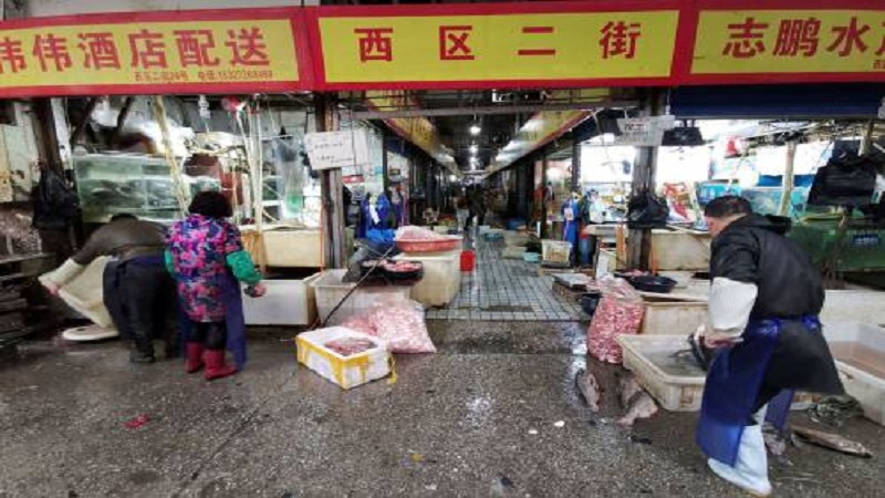 سوق المأكولات البحرية بمدينة ووهان في وسط الصين.