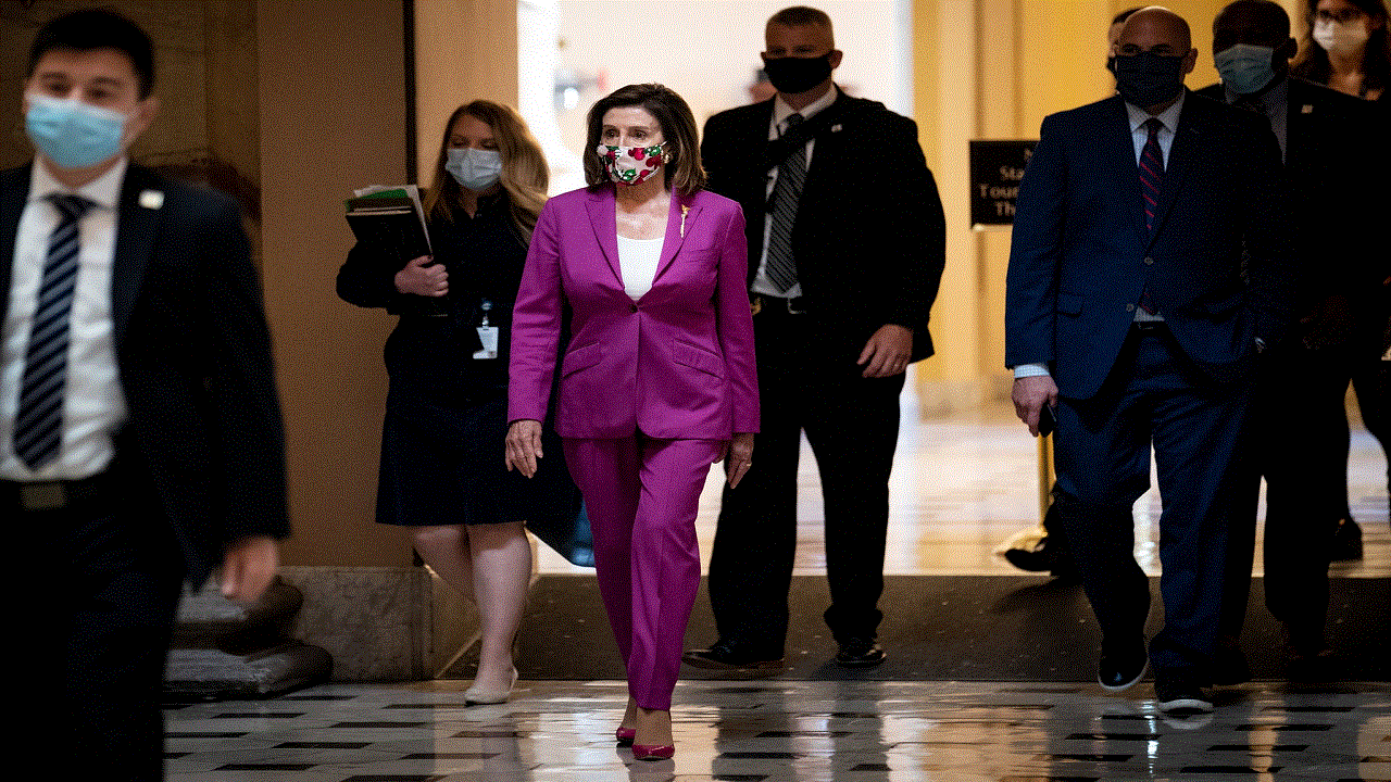 وفي الوقت الذي يظل فيه الرئيس دونالد ترامب، يتجاهل ارتداء القناع، ظلت بلوسي ترتديه وتعلم تماما ان ذلك يصب في صالحها بشكل لا تخطئه العين ما يجعل الشعب الاميركي يحس بالفرق بين الالتزام باللوائح والقوانين وازدرائها. فالالتزام بذلك هو تذكير دائم بالاختلاف بين رئيسي السلطتين التنفيذية والتشريعية.