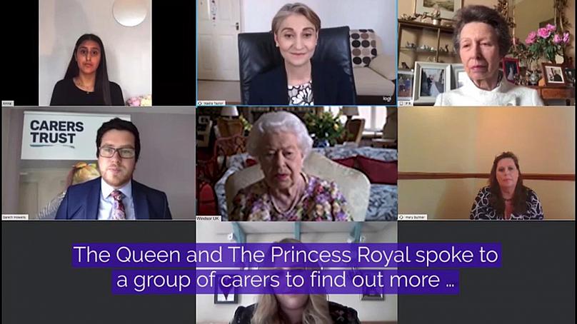 فبسبب فيروس كورونا المستجد، استعانت ملكة بريطانيا بخدمة الاتصال بالفيديو من قصر ويندسور للاستماع إلى أربعة معاونين من جمعية "كيررز ترست" وتهنئتهم.