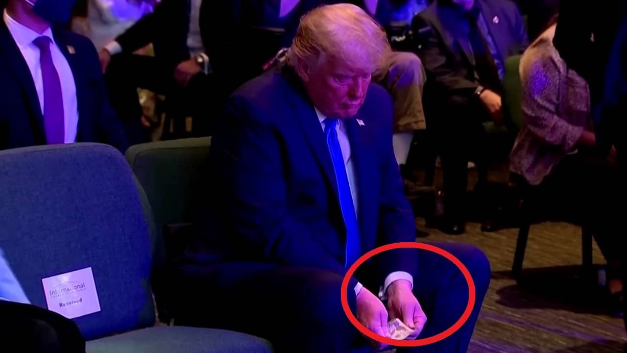 بالفيديو.. ترامب يعد الدولارات قبل التبرع بها