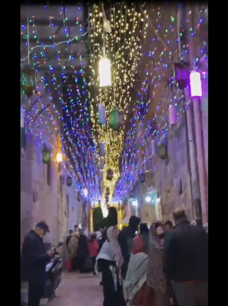وقد رصدت «الإمارات اليوم» أجواء استقبال سكان القدس شهر رمضان الكريم، فالمتجول قادما من باب العامود، مرورا بأزقة وأحياء مدينة القدس الشريف، وصولا إلى باب القطانين أحد أهم وأبرز أبواب المسجد الأقصى المبارك، تستوقفه زينة رمضان الموجودة في كل بلدات زهرة المدائن العتيقة، وتجذبه الفوانيس والأضواء المعلقة على مداخل الحارات وأبواب الأقصى، وأسوار البلدة القديمة، والتي تضفي أجواء جميلة تزين المدينة المقدسة في شهر الصيام الفضيل.