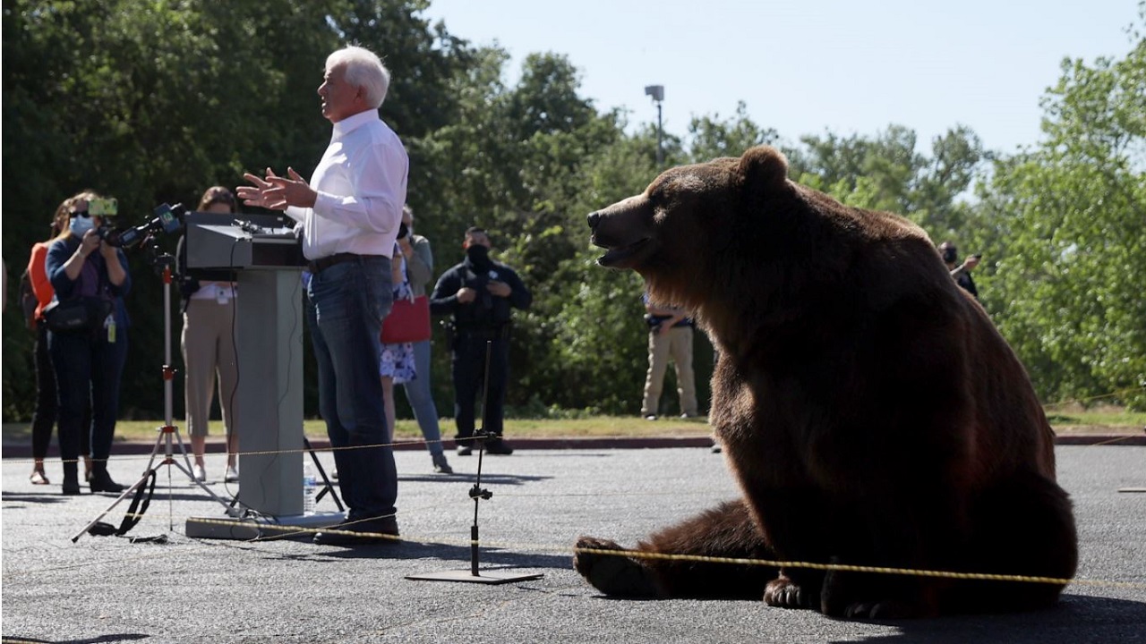 أثار جون كوكس، أحد المرشحين الجمهوريين لخلافة حاكم كاليفورنيا المهدد بسحب الثقة منه في استفتاء مقبل، ضجة كبيرة إثر ظهوره في لقاء انتخابي بجانب دب بني.