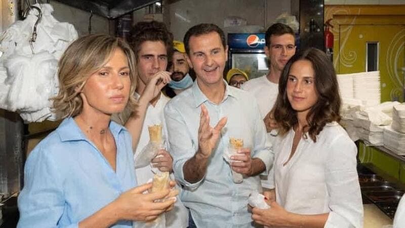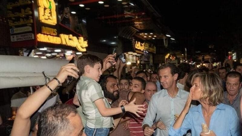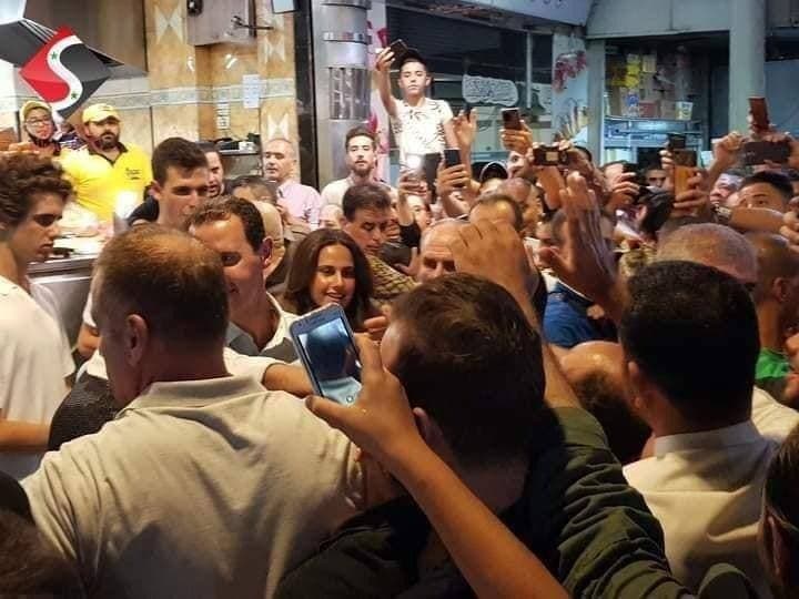 الأسد يتجول في حي الميدان بدمشق ويتناول ساندويشات «شاورما»