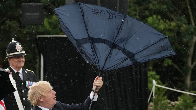 وجد رئيس الوزراء البريطاني بوريس جونسون نفسه في موقف محرج بعد أن التقطت عدسات الكاميرات لقطات له وهو «يتصارع» مع مظلته «التي رفضت أن تفتح».