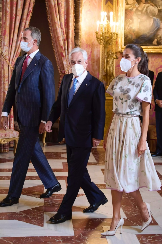 الملكة ليتيتسيا المعروفة بأناقتها الفائقة كانت يوم الأربعاء بمعية زوجها للترحيب بالرئيس التشيلي، سيباستيان بينيرا في العاصمة الإسبانية مدريد، قبل أن ينضم الجميع لمأدبة غداء رسمية في القصر الملكي في البلاد.
